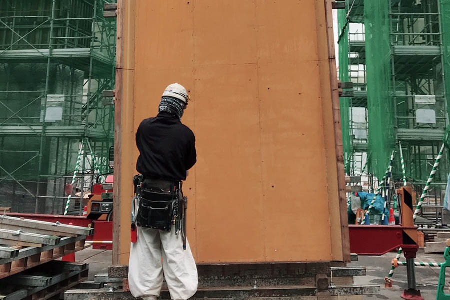 まだ柔らかいコンクリートを「枠」に流し込んで固まらせます。その型枠を作り込む仕事が型枠工事です。当然ですがコンクリートは固まるともう戻せません。型枠大工施工の責任が重大であることを私たちは理解しています。
